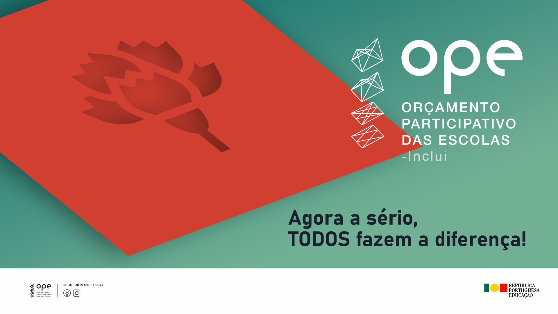 O Orçamento Participativo das Escolas (OPE), aprovado pelo Despacho nç 436-A/2017, tem como objetivos contribuir para as comemorações do Dia do Estudante e estimular a participação cívica e democrática dos estudantes, promovendo o seu espírito de cidadania e diálogo, a mobilização coletiva em prol do bem comum e o respeito pelas escolhas diferentes, valorizando a sua opinião em decisões nas quais são os principais interessados e responsáveis e, finalmente, permitindo o conhecimentos do mecanismo do voto.